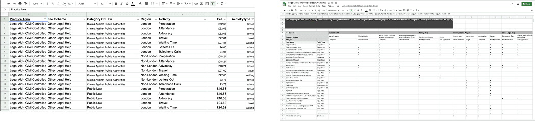 The complexity of Legal Aid lay in its rate matrix. The documentation provided by the Legal Aid Agency exceeded 5,000 lines and had no structured format.