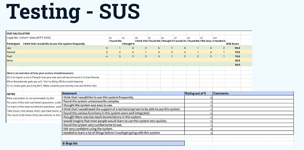 I created a full interactive prototype covering core Legal Aid tasks. We conducted usability testing using the System Usability Scale (SUS). Results showed improved usability confidence and reduced perceived complexity compared to the legacy approach. Participants reported greater clarity and stronger confidence in submission accuracy.